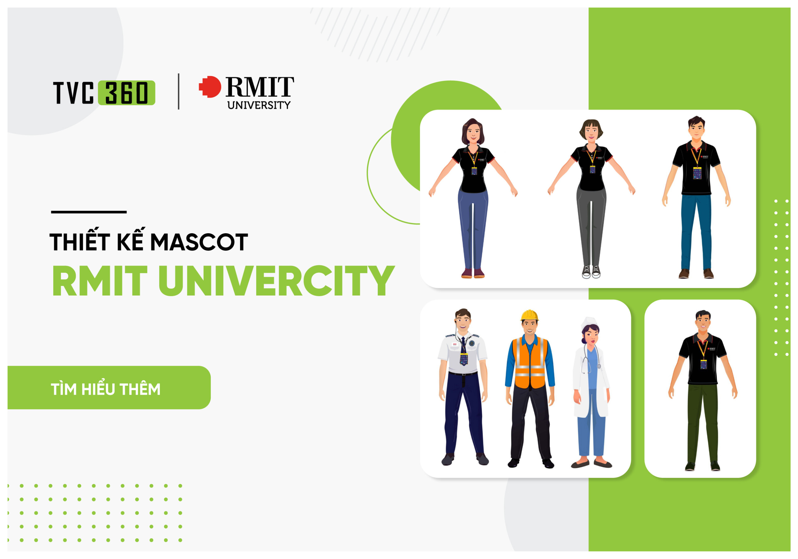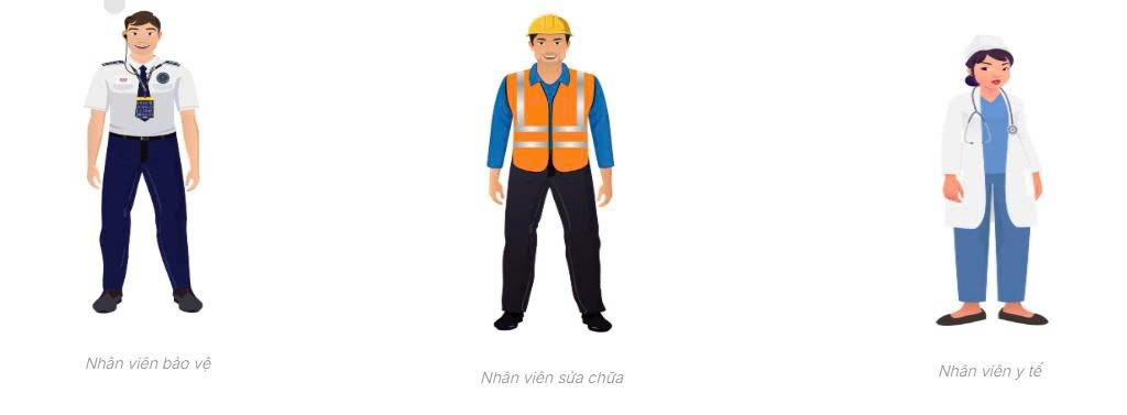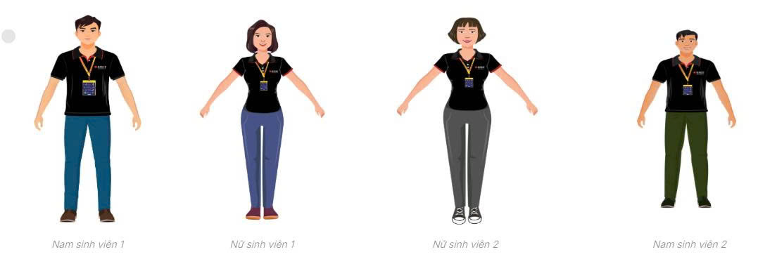 Kết luận: Nhìn chung, toàn bộ thiết kế hướng đến sự cân bằng giữa tính đại diện và sự gần gũi, vừa tạo cảm giác chuyên nghiệp, vừa truyền tải tinh thần thân thiện, năng động. Đây là bộ nhân vật có thể ứng dụng tốt trong các ấn phẩm truyền thông, đào tạo, video hướng dẫn hoặc mô phỏng tình huống trong môi trường học tập và làm việc.